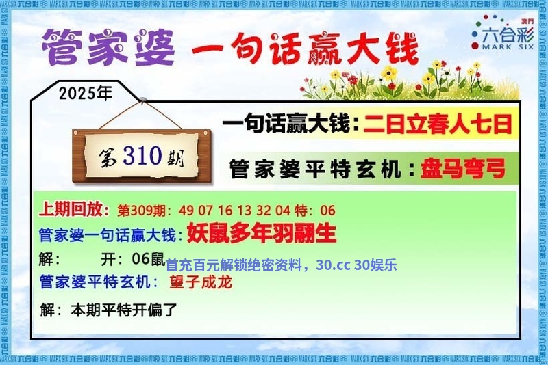 | 315期:➰绝杀三肖➰【羊鸡猴】开:發00中 |